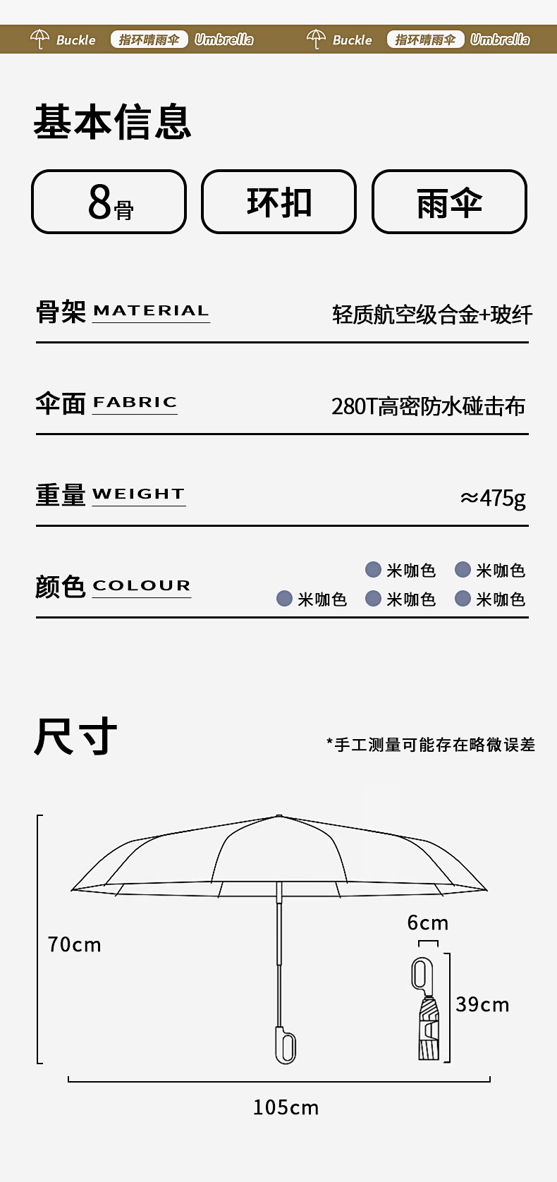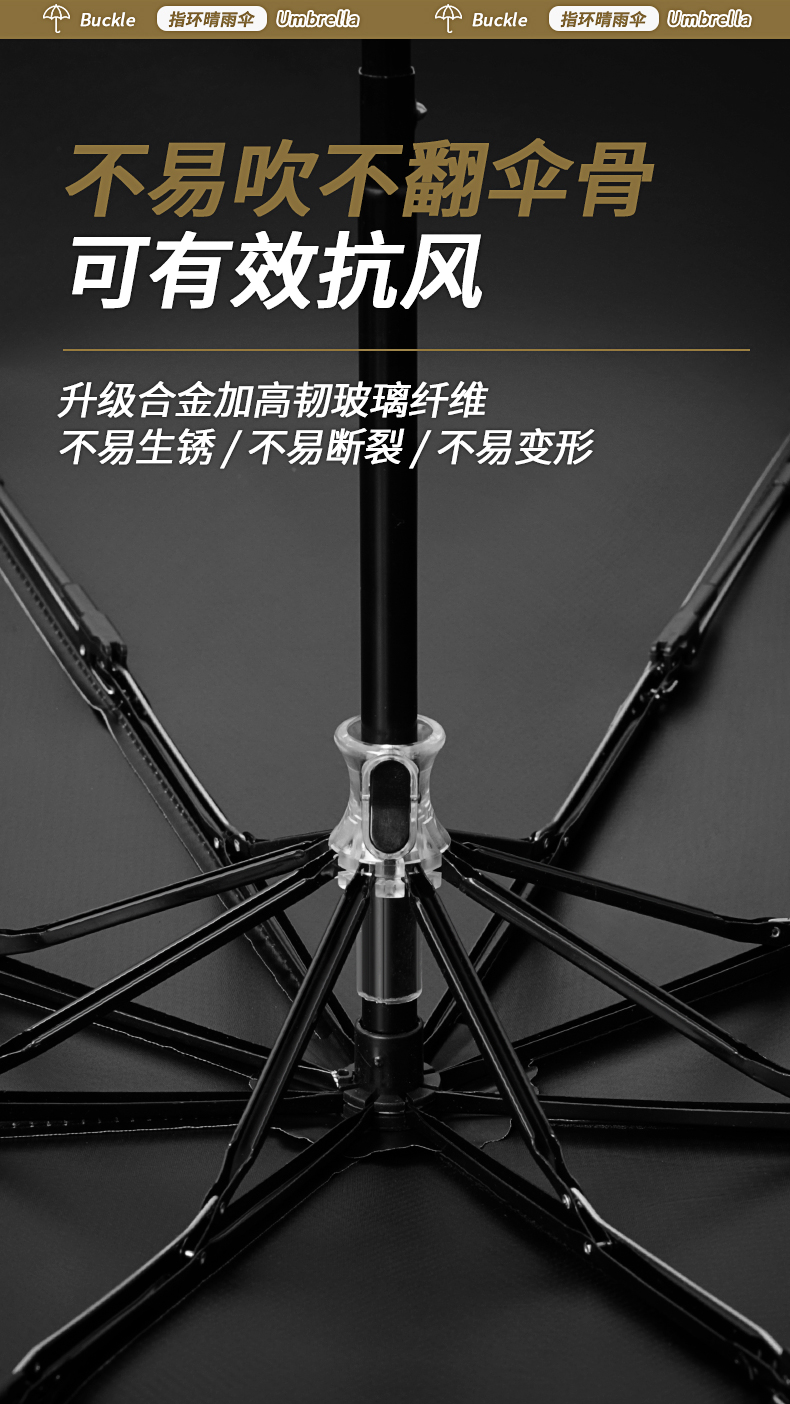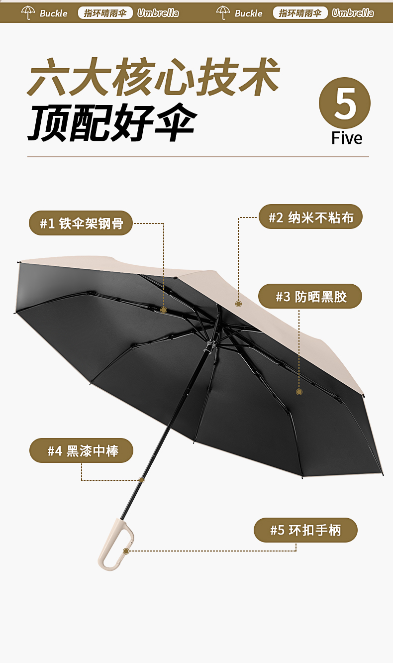 【伞头】:塑胶环扣手柄
