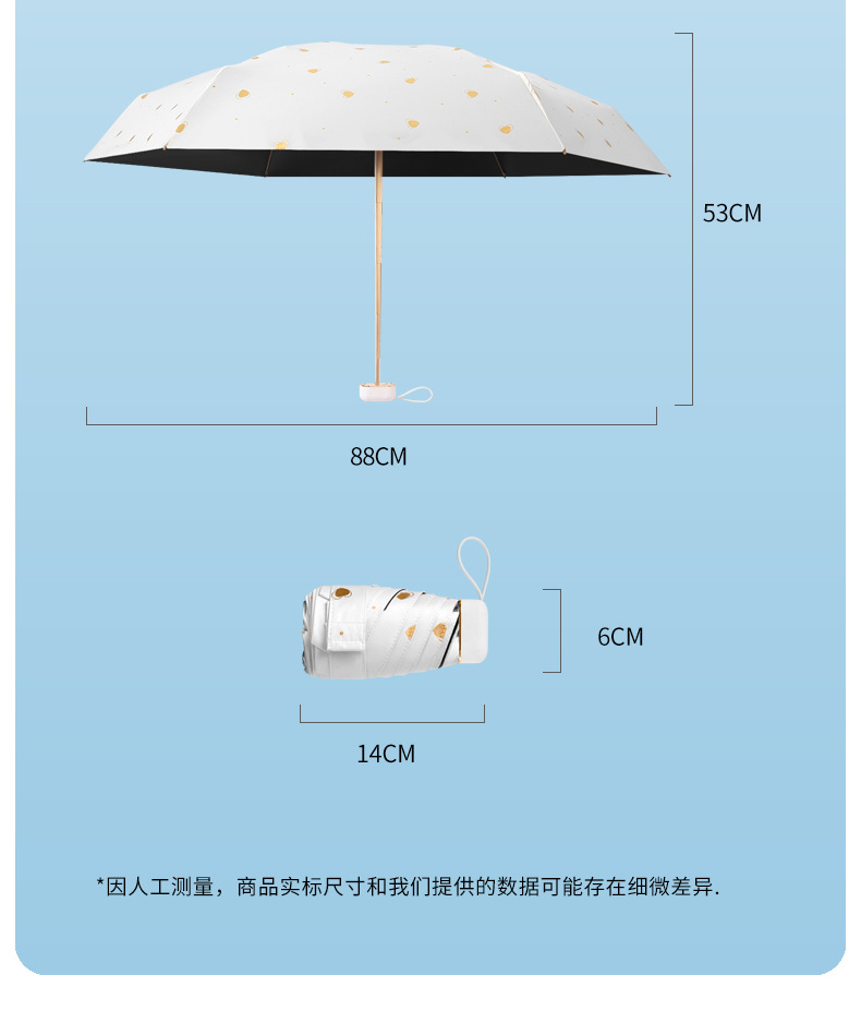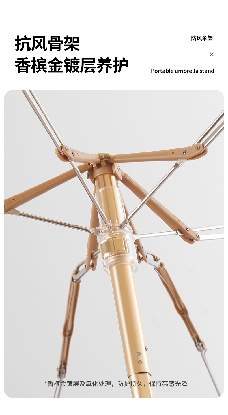 【骨架】:19寸x6k六节金色合金中棒纤维伞