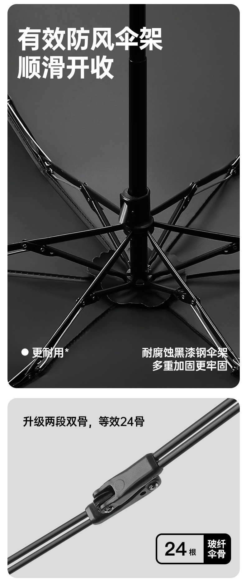 【骨架】:19寸x6k五节铁中棒纤维伞