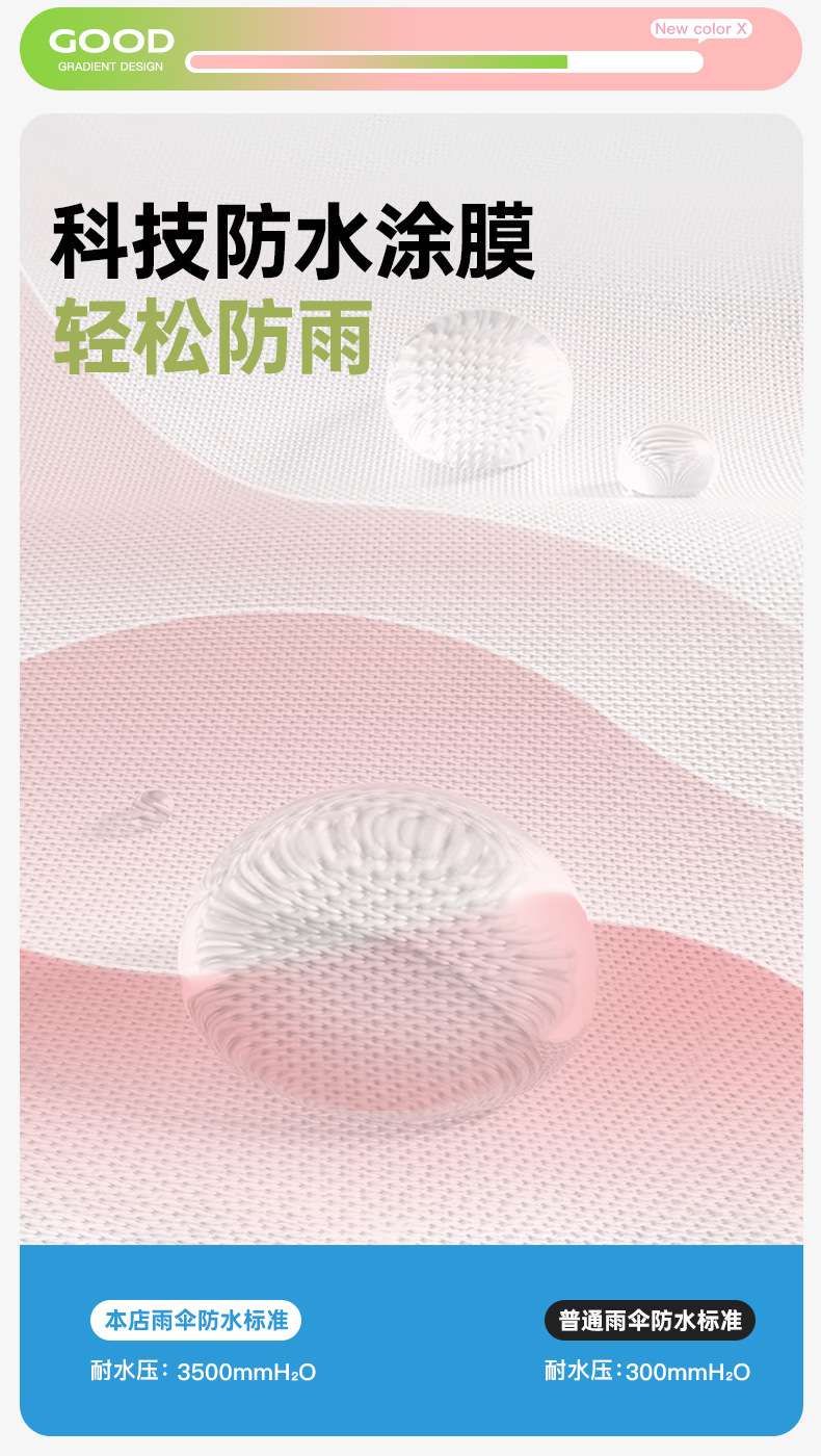【布料】:210T喷织布彩胶防紫外线